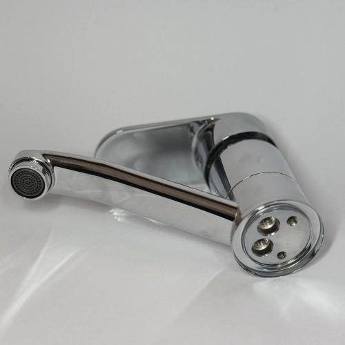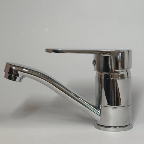 Змішувач для кухні Tani 002M, хром — стильне та практичне рішення для сучасної кухні. Виготовлений із міцного сплаву і покритий глянцевим хромом, цей одноважільний змішувач забезпечує зручне регулювання температури та напору води. Поворотний вилив дозволяє легко мити великі каструлі та посуд, а гнучке підключення спрощує монтаж.